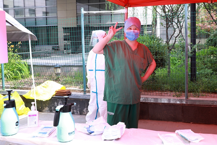 烈日酷暑,N95口罩加上密不透风的防护服……对于医护人员的辛苦,北大校医院党委书记朱建华感同身受。自疫情发生以来,北大校医院一直承担着燕园社区的核酸采样工作。朱建华也曾穿上“战衣”,与大家并肩战斗。2个半小时下来后,“会头疼,有轻微缺氧的感觉”“真正体会到大家的辛苦和不容易,真的是特别让人感动”。