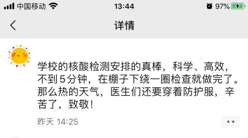 做完核酸检测的教职工朋友圈感言