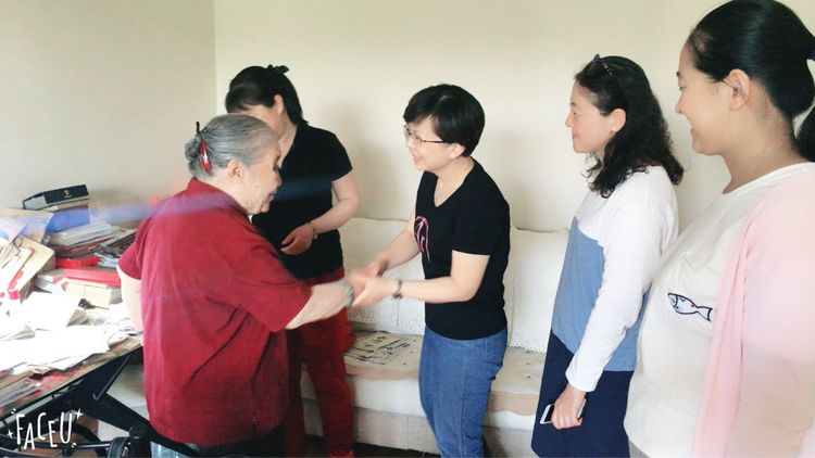 伴着初夏恰到好处的阳光,来到马老师家中。一进门,马老师看到大家前来慰问,难以抑制心中的喜悦之情、现年93岁的老人家虽腿脚不是很利落,但仍赶忙上前迎接。张炜护士长向马老师一一介绍慰问组成员并说明此行的目的。